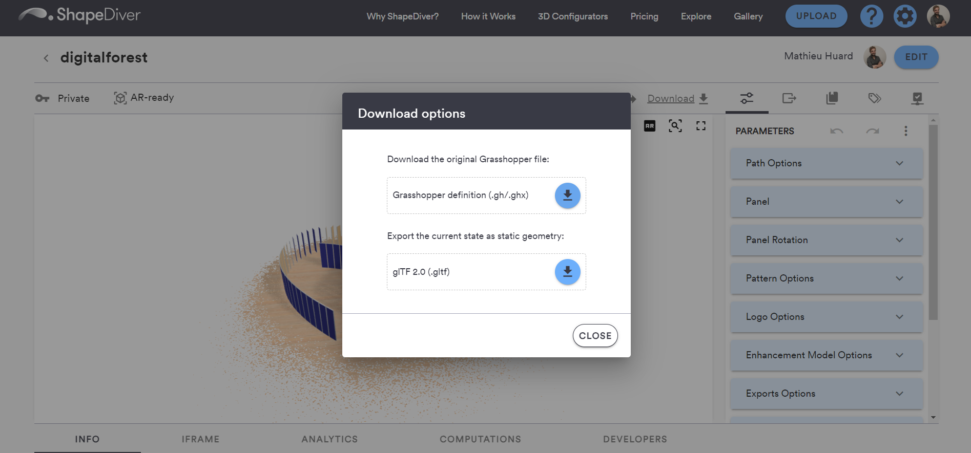 There are several ways to download again the Grasshopper definition that was used to create a ShapeDiver model.
