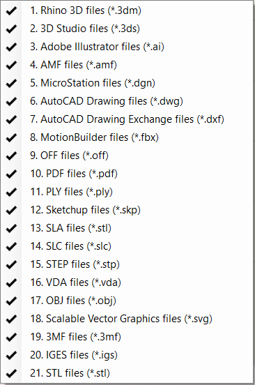 At the moment, the ShapeDiver plugin can import two file types, with the following objects supported: