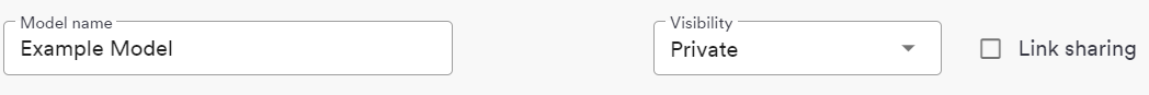 Find the link sharing option next to the visibility dropdown in the Edit page. The option becomes available for any model with “Private” visibility.
