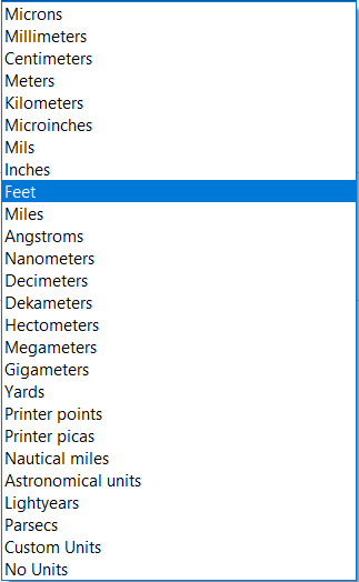 Unit System - Lets you define which unit system is used to compute solutions. The values are integers corresponding to the list of available unit systems in Rhino. For example, set it to 9 for using “Feet” as a unit: