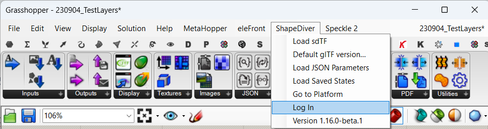 Using Rhino as a client to exchange data with a ShapeDiver model is only possible once the ShapeDiver plugin is installed. Once this is done, you can log in and authorize your ShapeDiver account from within Rhino/Grasshopper. You can do so in one of the following ways: